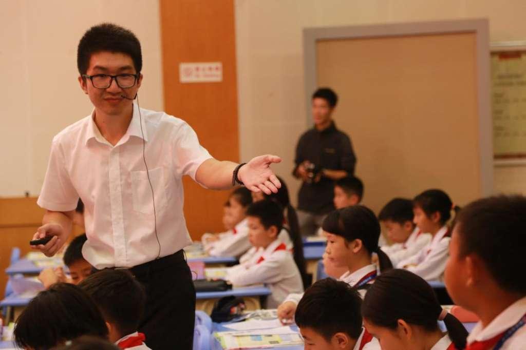 我校有着和德胜小学十分相似的办学背景,在校园设施配备、课程实施方面,两所学校都有着自己独有的经验。正是这样神奇的相似,把两所学校联系到了一起,经过一场秋日的约定,我校决定参观到访该校,从而搭建友谊之桥,谋划学校发展!到校之初,两校行政会晤交流,紧接着由顺德德胜小学的两位老师分别呈现了语文、英语学科的两堂精彩课例。第一节是陈海波老师执教的语文课《七律 长征》,陈老师基本功扎实,课堂设计紧凑,时而耐心倾听,时而巧妙点拨,时而慷慨激昂,时而低沉悲壮。另一节是何文聪老师执教的《A day at a children’s palace》,何老师风趣幽默,课堂轻松活泼。孩子们认真专注,口语流利,我校教师连连称赞,收获颇丰。