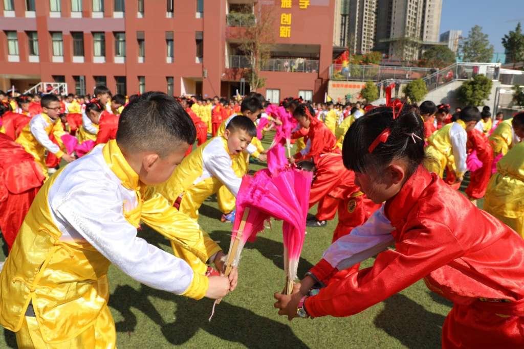 岁末隆冬艳阳高照,七彩少儿喜气洋洋,七彩云南小学内张灯结彩,迎新乐活动火热进行。